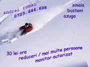 Invata sa schiezi fara sa pierzi timpul: monitor de schi autorizat in Sinaia sau Azuga. 30 RON ora sau reduceri pentru mai multe persoane. Gratuit cartea "Schi si Snowboard, tehnici, echipament si partii". Telefon 0723.444.698 |
